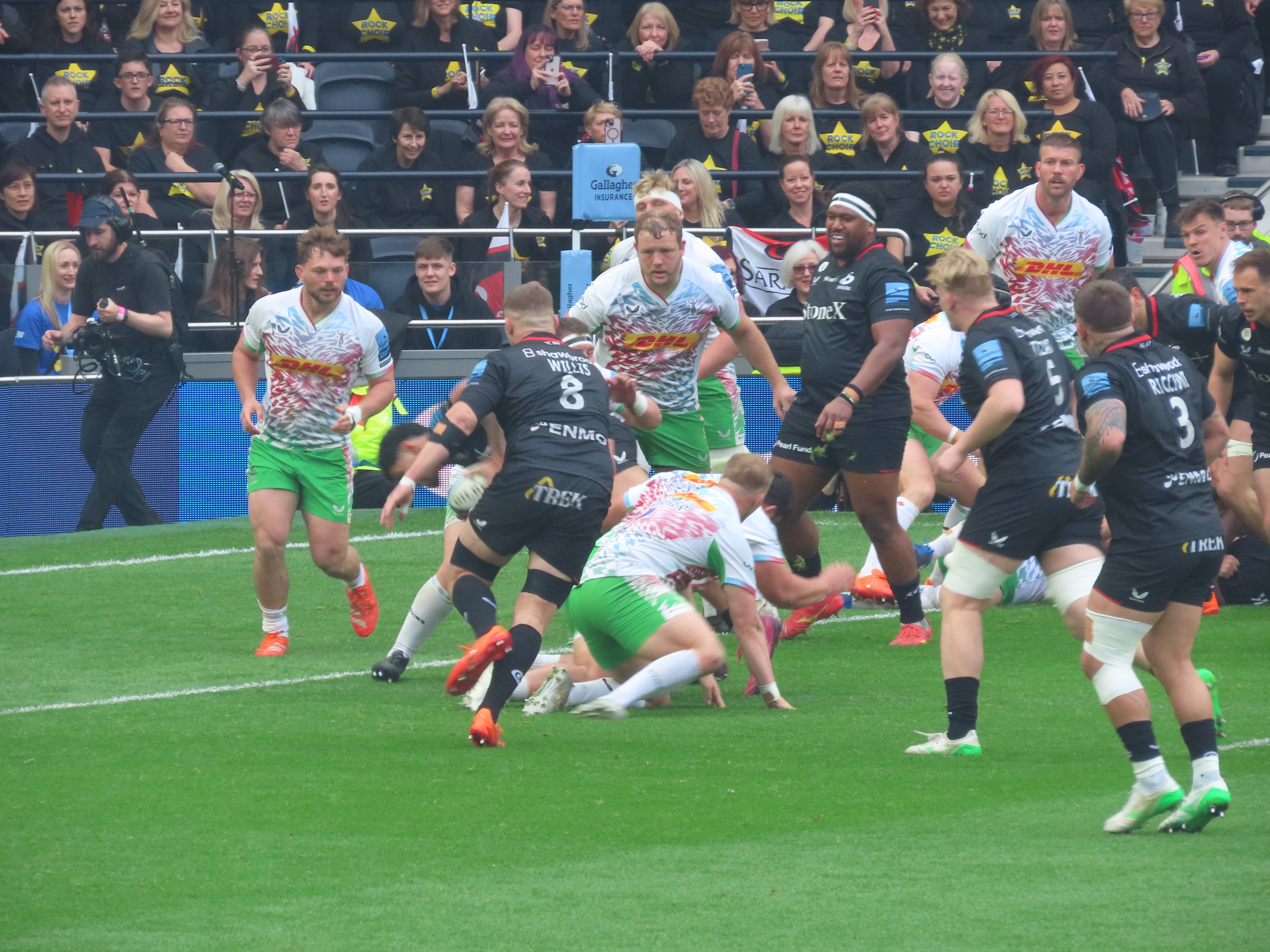 A great pass from Maro Itoje saw Juan Martin Gonzalez storm down the pitch, he passed to Burke who had van Zyl in front of him, but the Quins defence and Will Evans in particular saved the day for Quins with some excellent defence. The excitement levels were raised in the stadium as Benson drove a Quins attack from close to their line moments later, a sign of things to come.