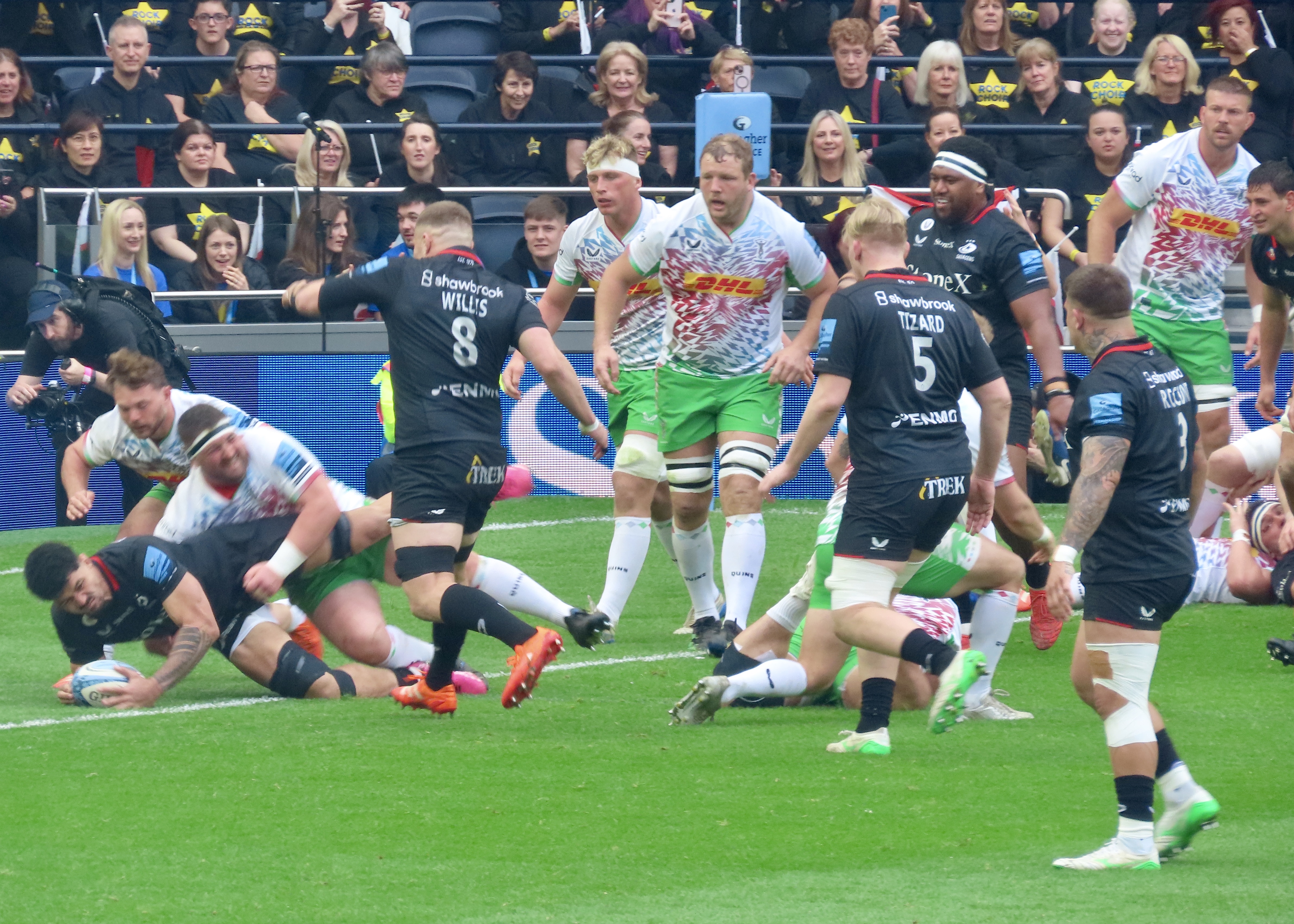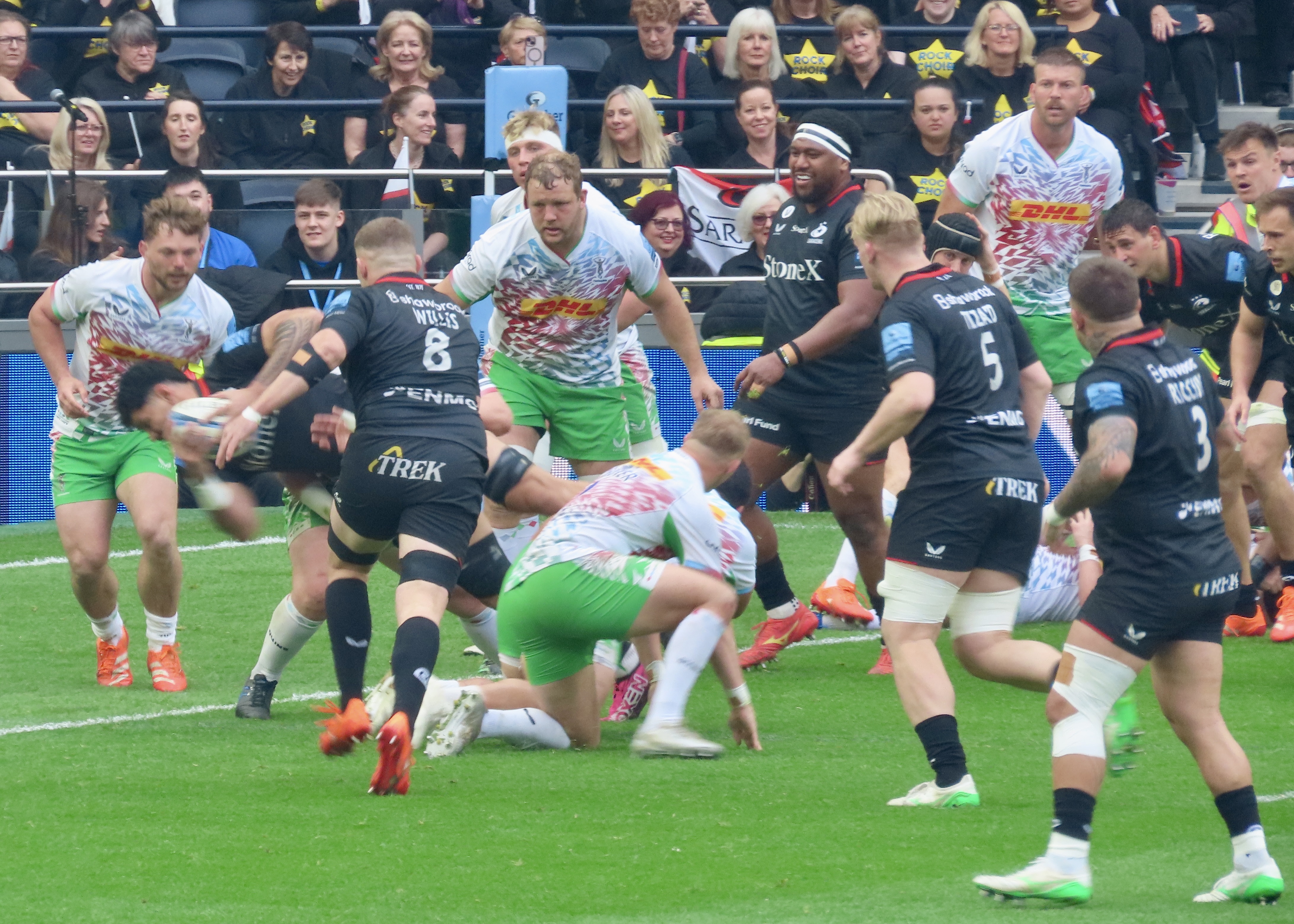 As loathe as I am to relive this match, it has to be done. In their wisdom the PRl/RFU placed the local derby weekend diectly after the 6 Nations. That meant each team had to make a choice about whether they included their international players, well, England players anyway. Player welfare doesn’t seem to matter for those playing for the other countries! WIth this being the big shop window game for Saracens they were always bound to pick as many of their top level players as possible, with the only notable name missing being Ben Earl That, I believe, backfired for the ‘home team’. Harlequins were missing their talismanic Fly Half, Marcus Smith, Chandler Cunninghamd South and Fin Baxter.