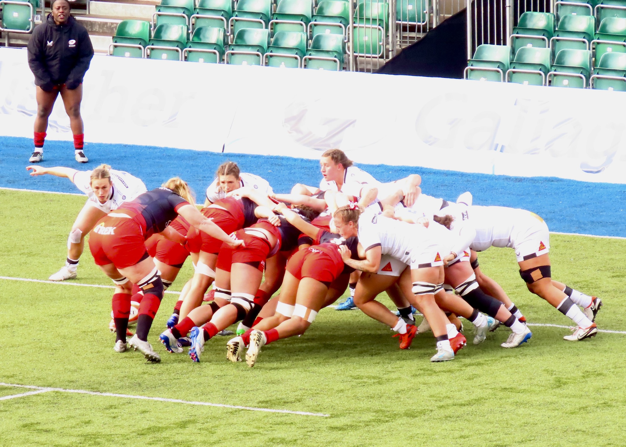 The kick off went straight into touch and Saracens rolled up the pitch before getting the ball to hand, Cleall again kicked, this time for her winger who was unable to gather the ball. Saracens then missed an opportunity having won the Exeter line out, the ball sailing past the lifted players.