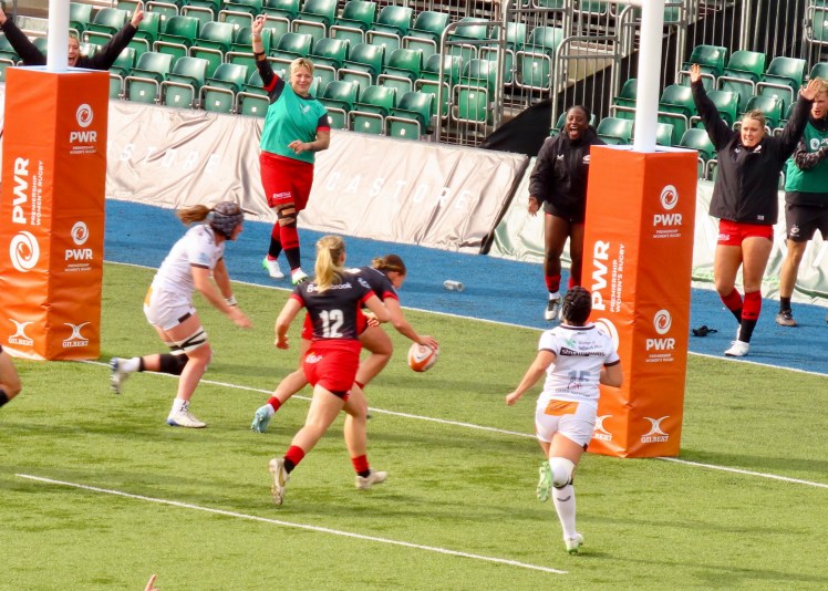 Saracens next try came after some lovely ball handling, Jemma Jo Linkins was the try scorer in determined manner.